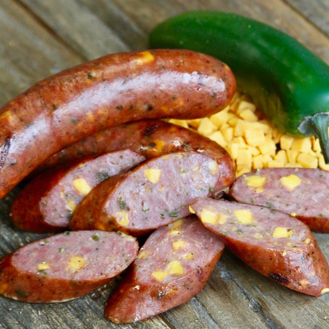 Pasture-raised pork processed with seasonings of jalapeno peppers and cheddar. Sold in 1 lb packages with 4 brats in each package.